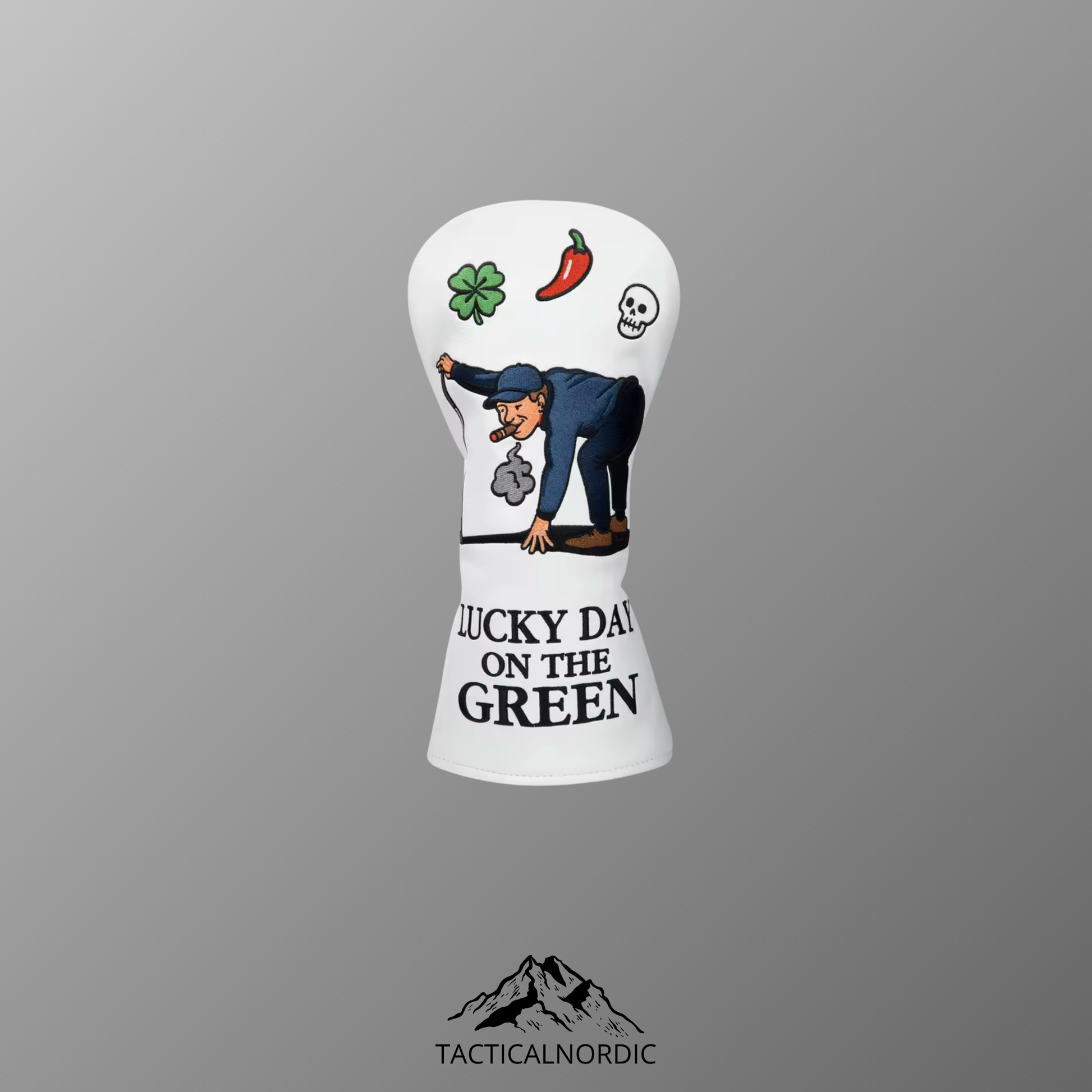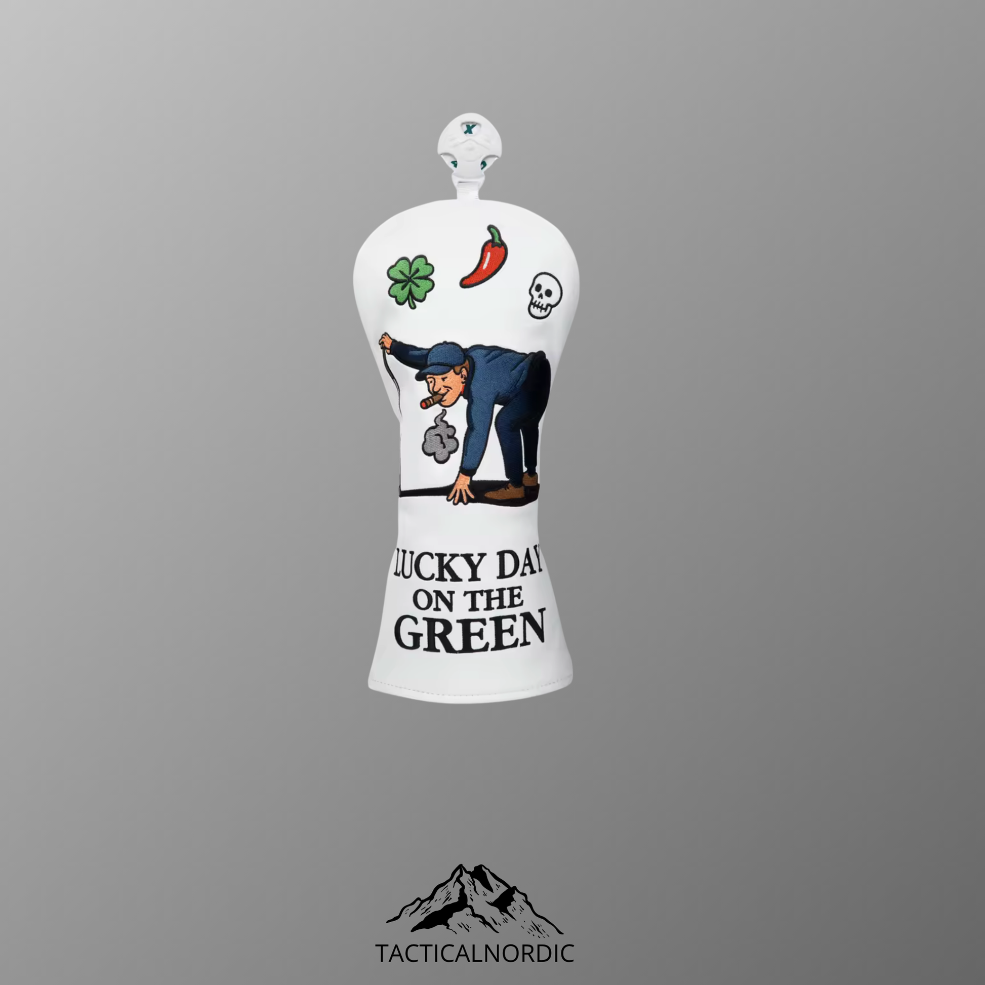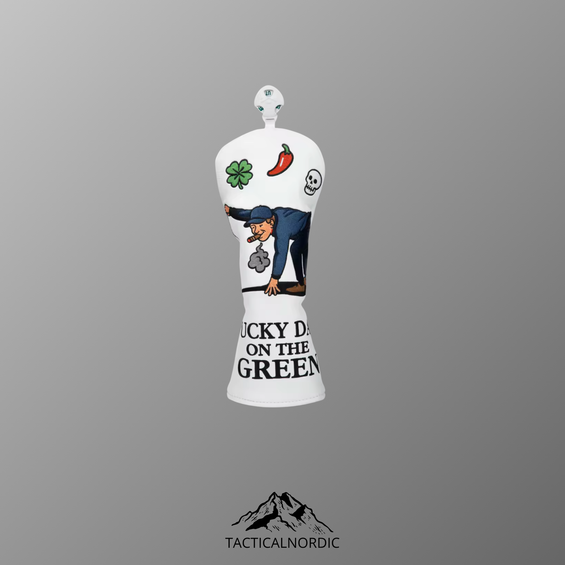 Lucky day on the green themed headcovers with text and images